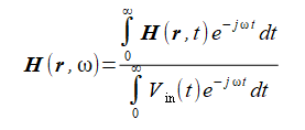 以上の方法で計算された時間領域の電磁界を指定した周波数でFourier変換することによって解析領域内の電磁界の調和界(=近傍電磁界、複素数)が得られます。