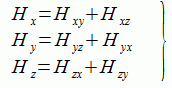 式(2-6-1)(2-6-2)のように電磁界の各成分を二つの成分に分解します。