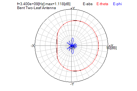 図7に2.4GHzでの水平面の放射パターンを示します。文献[9]のFigure12.23とよく似ています。