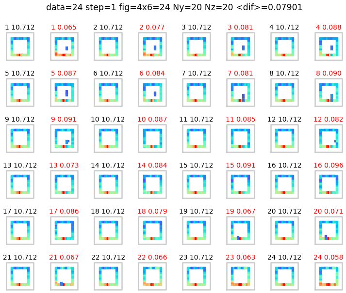 左の黒数字はデータ番号と電流最大値、右の赤数字はデータ番号と電流値の誤差の平均です。