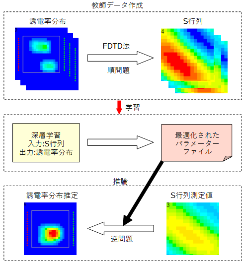 多数の誘電体分布とS行列画像の組(教師データ)を求めます。