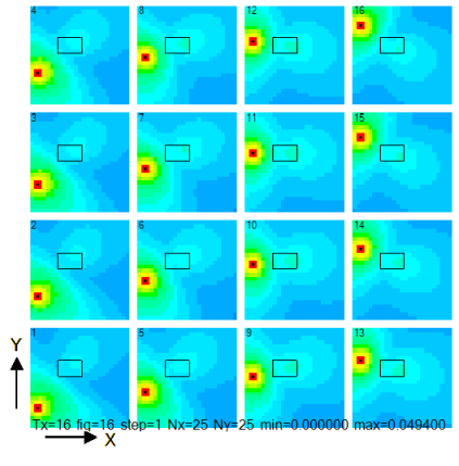 図2-3に送信アンテナを移動させたときの電界分布を示します。