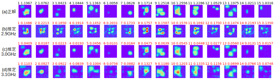 (b)(c)(d)は学習時と比べて周波数が低いとき、同じとき、高いときです。