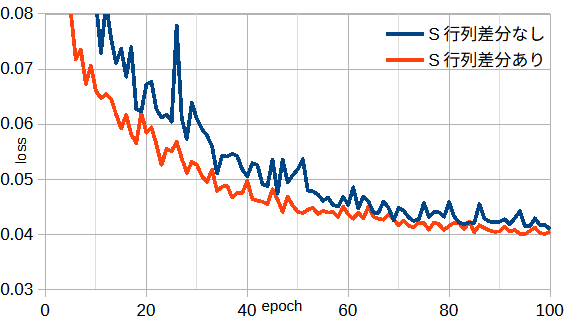図3-5にS行列差分がないときとあるときの損失を示すます。