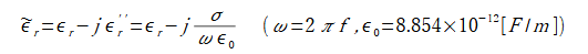 なお、複素比誘電率と比誘電率、導電率の関係は以下の通りです。