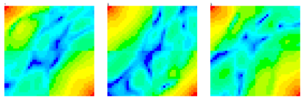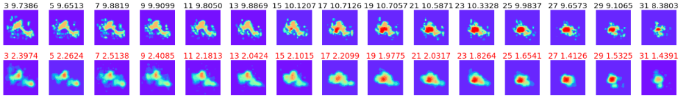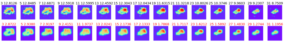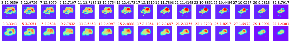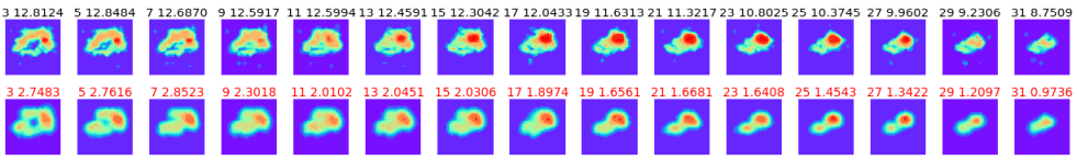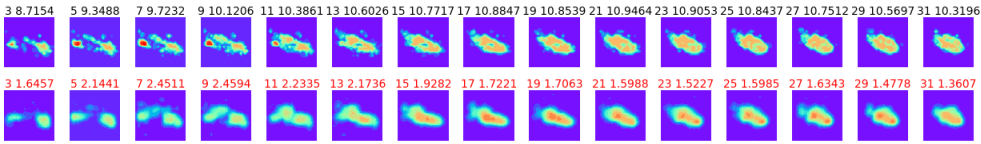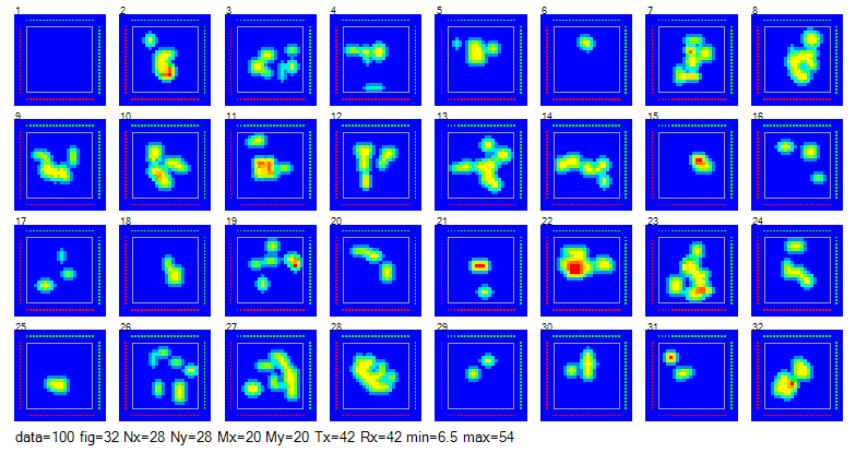 それぞれ2mm間隔の計15個のZ断面のテストデータの誘電率分布の推定結果です。