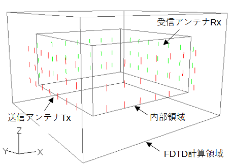 送信アンテナを内部領域の外側の-X面と-Y面に置きます。