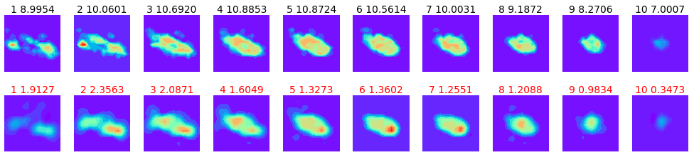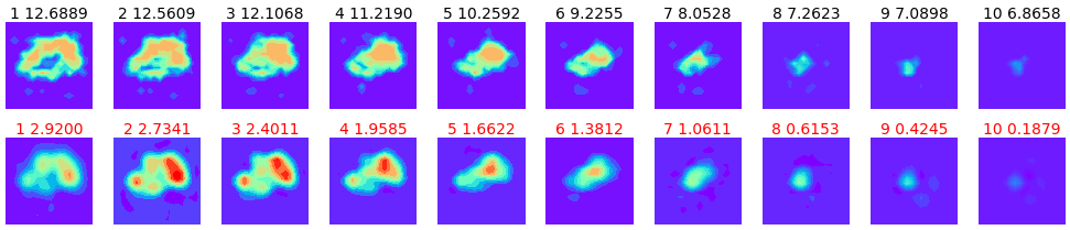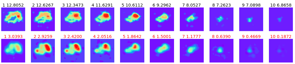 Z断面(全10面)をスライスした図であり、上下で正解と推定の2個1組のペアになっています。