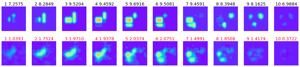 上の黒数字は比誘電率の平均、下の赤数字は比誘電率推定誤差の平均です。